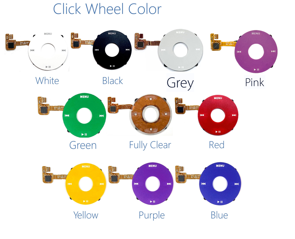 Faceplate Color / Click Wheel Color / Center Button Color / Backplate Color